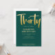 Vi introducerar en ny modern, elegant inbjudan till 30-årsfest, smaragdgrön bakgrund med guldbokstäver i handskriven typografi "trettio". Anpassa denna mall genom att lägga till din egen festinformation.