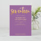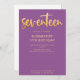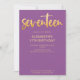 Inför en ny modern elegant 17:e födelsedagsfest inbjudan med lila bakgrund med handskriven typografi från guld som säger sjutton". Anpassa det här mallkortet genom att lägga till egen party-information.