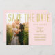 Unikt bröllop-foto sparar datumet. rosa. Guld (guld är inte guld utan färg). Modern, strömlinjeformad teckensnitt. Helt unik, enkel och elegant. För sommaren bröllop, vår bröllop eller något slags modernt elegant bröllop.