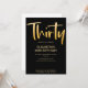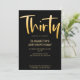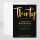 Vi presenterar en ny modern, elegant inbjudan till 30-års födelsedagsfest, svart bakgrund med guldfärgad handskriven typsnitts text "trettio". Anpassa denna mall genom att lägga till din egen festinformation.
