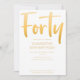 Vi presenterar en ny, modern, elegant 40-årsinbjudan för fester, vit bakgrund med guld handskriven typograftext "fyrtio". Anpassa det här mallkortet genom att lägga till egen party-information.