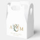Snyggtens favoritbox med ett modernt monogram och delikat eukalyptus i mjuk beige och grönt på en skarp vit bakgrund. Anpassa med namn och bröllop-datumet för en elegant, samordnad kontakt med firande. Perfekt för små gåvor eller behandlingar till dina gäster.