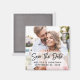 din bröllop-dejt med det här enkla fotot med elegant spara datum magneter som innehåller ett av dina favoritfoton på förlovningen med "Spara datum" och ditt namn- och bröllop-datum i modern svart typsnitt över ett helt vitt övertäckningsband. Kontakta mig gärna på acherryonthecake@hotmail.com om du vill ha mer personlig anpassning eller anpassningsbar (tillåt 1-2 arbetsdagar).