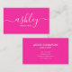 Modern Elegant Girly Calligraphy Pink Visitkort