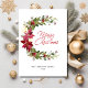 Det här moderna helgdag God jul blommigt i elegant har en vacker vattenfärgillustration av poinsettias, grey och bär. Personlig med ditt namn, år på framsidan och ditt helgdag-meddelande på baksidan.