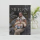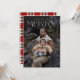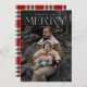 Elegant 1-fotokort för God jul med skript namnteckning namn. Modern typografi. Anpassa med fotot för lodrät helgdag, namn och år.