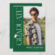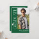 Celebrate your graduate in timeless, elegant style with this modern green and white graduation invitation. Set against a stylish green background, the design features trendy white serif “GRADUATE” typography running vertically down the side, creating a refined focal point. A stylish graduation cap icon sits above the “R,” while the flowing tail of the letter transforms into a sleek tassel—leading the eye to a standout photo of the graduate.