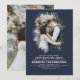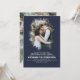 Romantisk, elegant greenery silhouette-fotoöverlägg marinblå bröllopsinbjudningar med de två lodräna foton.