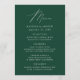 Enkel meny och elegant bröllop-meny med "Menu" som visas i ett modernt, vitt skript med mörk grönt bakgrund eller färg efter eget val. Anpassa menyn grönt bröllop genom att lägga till namn, bröllop datum och menyinformation. Designad att samordna med vår moderna elegance bröllop-samling.