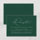 Kort för enkel mottagning och elegant bröllop med "Mottagning" i ett vitt, modernt kalligrafiskript med solid grönt (eller färg efter eget val). Anpassa de minimalistiska bröllopskorten genom att lägga till dina mottagningsdetaljer i vita bokstäver. Designad att samordna med vår moderna elegance bröllop-samling.
