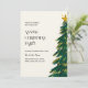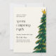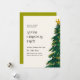 En fantastisk, modern och unik inbjudan till julfest med en vattenfärgsskiss i grönt Julgran med en stjärna överst.