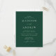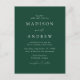 Minimalistiskt, modernt vykort för bröllopsinbjudan med information om bröllop i vita bokstäver med calligraphy-skript. Du kan ändra bakgrunden till grönten till ett färg efter eget val. Anpassa baksidan av vykortet för chicens bröllopsinbjudan med din returadress, önskat svarsdatum, bröllop webbplats och instruktioner för gäster med hjälp av de textmallar som finns. Designad att samordna med vår moderna elegance bröllop-samling.