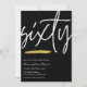 Fira den stora 60:e årsdagen med lektionen med den moderna eleganten 60:e födelsedagsfest inbjudan. Design innehåller "60" ord i ett handskrivet typsnitt av klass som accentueras av ett glam-penselpenseldrag för söt guld glitter. Grund lämnat om kortet och visar detaljerna för födelsedagsfirandet som kan anpassas helt efter dina behov. Den omvända sidan har en söt strimlad guld glitter mönster.