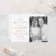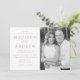 Modern fotobröllopsinbjudan som innehåller dina bröllop-detaljer på den lämnat designen i guld-bokstäver med calligraphy-skript-accents. Anpassa framsidan av inbjudan genom att lägga till namn, bröllop-information och lodräts förlovning-foto. Baksidan av inbjudan ger utrymme för ytterligare text och foton. Designad att samordna med vår moderna elegance bröllop-samling.