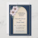 Modern elegant marinblå bröllopsinbjudan med den gyllene ramen och rosor.