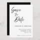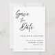 Ett elegant handskrivet skript för att spara datumet för bröllopsannonsering. Detta kort för att spara datumet har en elegant text med ett enkelt minimalistiskt svart och vitt tema. Anpassa texten med alla detaljer för din speciella dag.