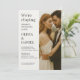 Meddela din hemliga vigsel med denna moderna och eleganta minimalistiska fotografiska inbjudan. Rena linjer, förfinad typografi och en rymlig layout framhäver din utvalda bild samtidigt som era namn, datum och detaljer framstår vackert tydligt. Perfekt för par som söker ett modernt, stilrent och tryckfärdigt meddelande om hemlig vigsel.