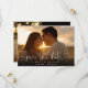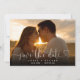 Denna eleganta hjärtmanus fotobesparing datumkort har ditt foto och ett manus som sparar datumet ovanför era namn, datum och plats. Baksidan har ett extra foto och meddelande på svart bakgrund. Designad av Thisisnotme