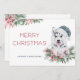Ett vackert kort med en fredlig miljö med en söt Husky-hund som är inramad av löv och grön. Perfekt för att skicka årshälsningar till klienter, anställda och alla på din lista. Kortets framsida har "God jul" och ditt företag namn. Kortets baksida innehåller ditt meddelande om helgdag av personligen. Fira säsongen med det här eleganten-kortet från Cherry Lane Designer!