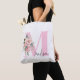Modern Elegant Initial Namn Rosa Blommigt Monogram Tygkasse
