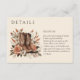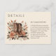 Förhöj din bröllopsbrevpapper med dessa eleganta dubbelsidiga informationskort, designade för att komplettera ditt moderna västerländska tema. Med broderade neutrala blommor och charmiga cowboy-stövlar kombinerar de rustik charm med tidlös elegans. Den ena sidan ger viktig information om mottagningen, så att gästerna vet var de ska fira din speciella dag, medan den andra sidan innehåller boendeinformation för en smidig och stressfri upplevelse. Tryckta på premiumstrukturerat kartongpapper håller dessa vackert designade kort dina gäster informerade med stil.