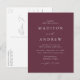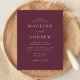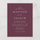 Minimalistiskt, modernt vykort för bröllopsinbjudan med information om bröllop i vita bokstäver med calligraphy-skript. Bakgrunden vin-lila kan ändras till en färg som du själv väljer. Anpassa baksidan av vykortet för chicens bröllopsinbjudan till din returadress, bröllop webbplats, bilder etc. Designad att samordna med vår moderna elegance bröllop-samling.