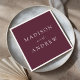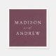 Eleganten, personlig lila bröllop-servar är perfekt för ditt bröllopsmottagande, repetitionsmiddag, förlovningsfest och mycket mer! De minimalistiska lila bröllop-blöjorna är perfekt för sommar, fall, vinter och vår bröllop. Utformningen har ett modernt kalligrafiskt skript i chic med namn i vit text mot bakgrund av vin-lila. Utformningen koordinerar med vår moderna Elegance Vin bröllop-samling.