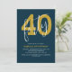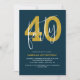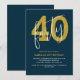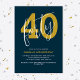 Modern Elegant Marinblå Guld 40-årsfirande Inbjudningar