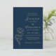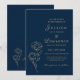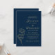 Öka bröllop med denna minimalistiska, moderna, elgant marinblått och guld-inbjudan, med blommigt i elegant ro. Med en marin bakgrund och eleganta guld-högdagrar utstrålar den här designen tidlös charm, perfekt för en chic och romantiskt firande. Anpassa för en unik beröring på din speciella dag.