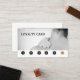 Modern lojalitetskort med en professionell studio bild av en kvinnas rygg. Du kan hitta liknande affärskort i vår butik med det här fotot, så att du kan matcha det med standard-/mini-/magnetkort eller avtalat kort eller referenskort.