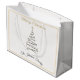 Make a statement this holiday season with this modern elegant Christmas gift bag, featuring a sleek black and gold Christmas tree framed with soft champagne tones. Personalized with your family name, this large glossy bag is perfect for wrapping bigger or multiple gifts with timeless sophistication.