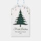 En snyggt, en modern julklapp märkre med en minimalistisk utformning av Julgran i guld och djupa gröntar. Träd är dekorerat med enkla prydnadsföremål och ett litet ljus med tvillinginslag.