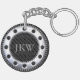 Den här sofistikerade nyckelkedjan har modern, svart elegant och grått rand och ett enkelt modifierat monogram inuti en rivet.
