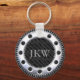 Den här sofistikerade nyckelkedjan har modern, svart elegant och grått rand och ett enkelt modifierat monogram inuti en rivet.