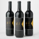 Modern Elegant Monogram Guld Black Faux Foil Vinflaska Etikett