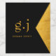 Svart vin-etiketter för hem eller affärsverksamhet, med ett enkelt, rent modernt guld-minimalistiskt monogram på svart, med enkel nedre fodral-serif-typografi initialer och en faux foil guld-triangelform. Ett skiljetecken (punkt) delar upp det första och sista tecknet som ett enkelt utformat inslag som definierar detta typografi stil som modernt och rent. Ditt namn i versalserif-typ. Enkel, ren och modern.