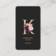 Modern Elegant Monogram K Blommigt Black Guld Visitkort