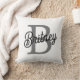 Modern Elegant Monogram Namn Black Grått-skript Kudde