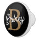 Den moderna Eleganten Monogram Namn Black Guld har en chic och en sofistikerad design. Den här knoppen skryter med en svart keramisk bas med ett skript i elegant guld som visar personlig monogram och namn. Med en kombination av svart och guld tillför man en aning lyx och skapar det en snyggt att välja för att förbättra möbler eller kabinett. Dess förfinade utformning säkerställer att den inte bara tjänar ett funktionellt syfte utan även höjer estetiken i alla rum eller biet i möbler.