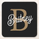Modern Elegant Monogram Namn Black Guld Underlägg Papper Kvadrat