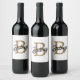 Modern Elegant Monogram Namn Black Guld Vinflaska Etikett