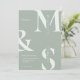 Modern Elegant Monogram Sage Grönt bröllopsinbjudan. Har fet initialer-typografi och minimal grafisk design. Anpassa texten med all information om din speciella dag.