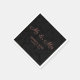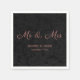 Den moderna eleganten Mr. och Mrs. bröllopsservetter med pappra cocktailservar har en svart blommigt, ro guld-manus och ett trendig, klassy, snyggt, chic, vacker, självklar metallisk mönster design. Upphovsrätt Marg Seregelyi Fotography.