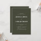 Den här bröllopsinbjudan har en oliv grönt färg och ren contemporary. Dess minimalistiska utformning garanterar tydlighet och elegans, skapar den lämplig för olika bröllop-teman. Den kan anpassas med information om namn, bröllop och plats. Perfekt för par tittar för en chic och en förfinad inbjudan som anger tonen för deras speciella dag.