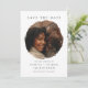 För paret som är gifta sig och vill ha en enkel contemporary och snyggt bröllop spara datum. På så sätt kan datumkortet innehålla ett par foto, namn av brud och brudgumm och alla viktiga bröllop-datum. Låt vänner och familj veta att spara datumet i sin kalender med ett enkelt, elegant och minimalistiskt stil bröllop spara datum. Parets foto visas i en oregelbunden form och i en trendig cirkel, vilket ge utformningen och contemporaryn.