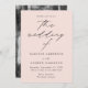 Minimalistisk, modern bröllopsinbjudan med dina bröllop-detaljer i ett vanligt svart brev med "bröllop av" i ett kalligrafiskt skript för elegant med bakgrund. Inbjudan går tillbaka till visningen av förlovningen lodrät. Designad att samordna med vår moderna elegance bröllop-samling.