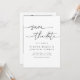Det här är ett modernt minimalistiskt, enkelt sätt att spara datuminbjudan med ett serieteckensnitt och ett svep-kalligrafiskt teckensnitt. Den här inbjudan från elegant bröllop levereras med en baksida där du kan visning ett eget speciellt foto. Redigera alla formuleringar utom "och" och "spara datumet" i den här inbjudan. Alla färg är också redigerbara. ____________ För matchande formgivningar, sök i OLIVIA i Sincerely By Nicole Zazzle store. * Om du tycker om den här designen men inte ser den tillgänglig för något du är tittar för, kontakta mig när som helst:)
