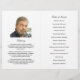 Modern begravningsprogram/begravningsbroschyr med en enkel men ändå elegant utformning. På fronten finns ett foto av de avlidna tillsammans med deras namn, födelse och död data. Insidan har ett andra bild tillsammans med två huvuden och två mallar för obituary och serviceordning. Paletten färg är svart och vit och kan ändras i designredigeringen av verktyg. Det här programmet kan användas för begravning, minnesceremoni eller firande i livet. OBS! Det pappra standardalternativet är "projektionsyta" och det bästa alternativet om du beställer det som ett vikt program.