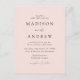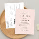 Minimalistiskt, modernt vykort för bröllopsinbjudan med dina bröllop-detaljer i svart text med calligraphy-skript-accents. Den bakgrunden till rosan kan ändras till en valfri färg. Anpassa baksidan av vykortet för chicens bröllopsinbjudan med din returadress, önskat svarsdatum, bröllop webbplats och instruktioner för gäster med hjälp av de textmallar som finns. Designad att samordna med vår moderna elegance bröllop-samling.