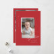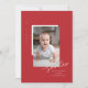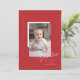 Den här moderna eleganten Red baby första christmas-fotokort är ett charmerande sätt att fira din lilla första julhelg. Med en minimalistisk röd bakgrund, kalligrafi av eleganten och utrymme för nyfödda foton från många, fångar den här designen perfekt ett nyfödd bebis glädje under årets lyckligaste tidpunkt.